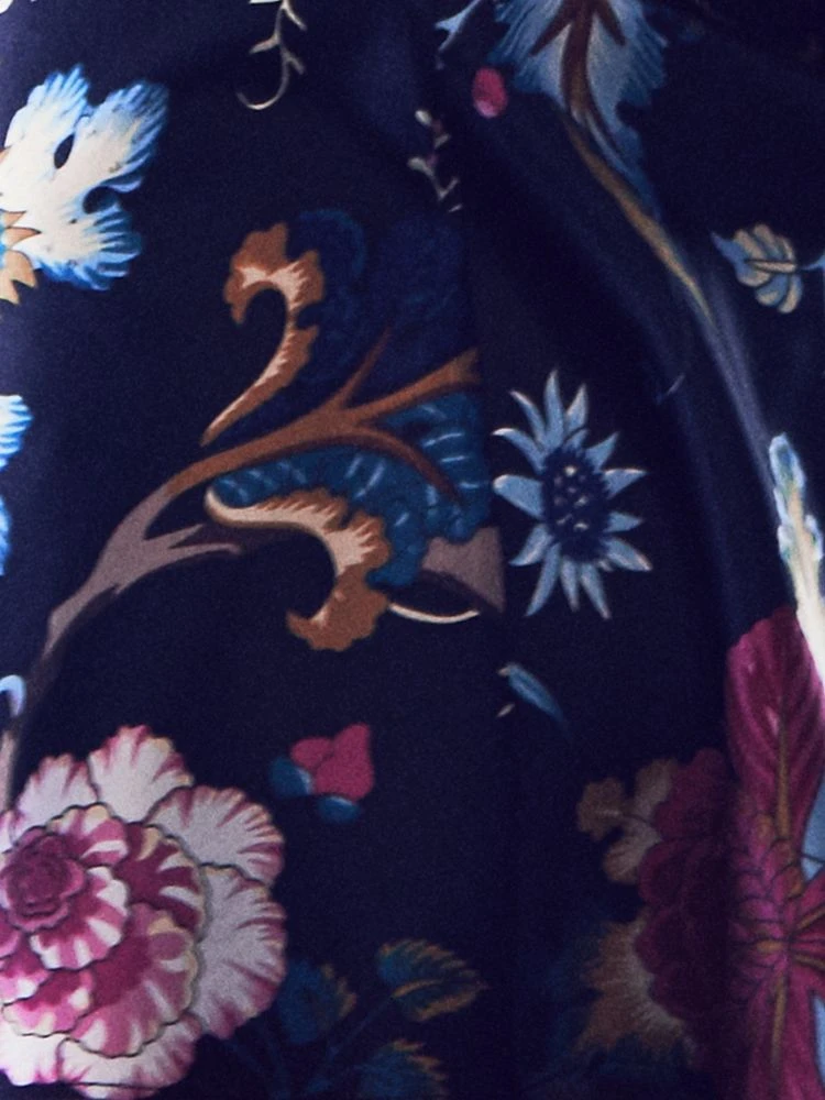 mit buntem Blumendruck auf schwarzem Grund 0123